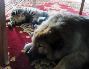 På vardagsrumsbordet håller Lill-polarn på att göra en jättestor fruktskål och är stolt som en tupp över hur fin den kommer att bli när den har torkat. Han och Wumba Wu hade valt i timmar bland alla mina dukar. Jag kände bara hur huvudvärken var på väg att ta ny fart, över vad de kunde ha tänkas gjort bland mina nystrukna dukar.