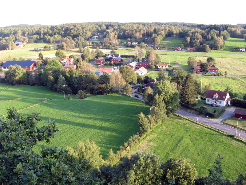 Sagt och gjort vi parkerade vid skolan och hade ingen aning om vad vi skulle ta vägen sedan. Vi gick upp vid ett hus och frågade farbror som stod och grejade vid sitt garage. Han tittade på oss som vi kom från planeten Mars när jag förklarade att det skall finnas ett berg med vacker utsikt så man kunde se hela Lindome ån. Han pekade upp från sin tomt och sa att för 15 år sedan så kunde man se hela Lindome, men nu var det helt igenväxt men ville vi traska runt där så okey? Den kanske kunde vara roligt för 3 snurriga kärringar. Han tittade på våra skor och ruskade på huvudet och när vi sa att vi glömt kaffet men hade bulle med oss så såg det ut som han hade löst att stänga den gamle grinden som han hade på tomten. Vi var tvungna att gå över hans marker för att komma upp till berget, med andra ord redan där borde vi fattat att vi gått lite fel. Han släppte i väg oss med uppmaningen att hålla vänster och inte vela bort mot taggtråden åt höger. Vi traskade iväg och upp i berget och fick se en vidunderlig utsikt. Men Lindome ån den såg vi överhuvudtaget inte.