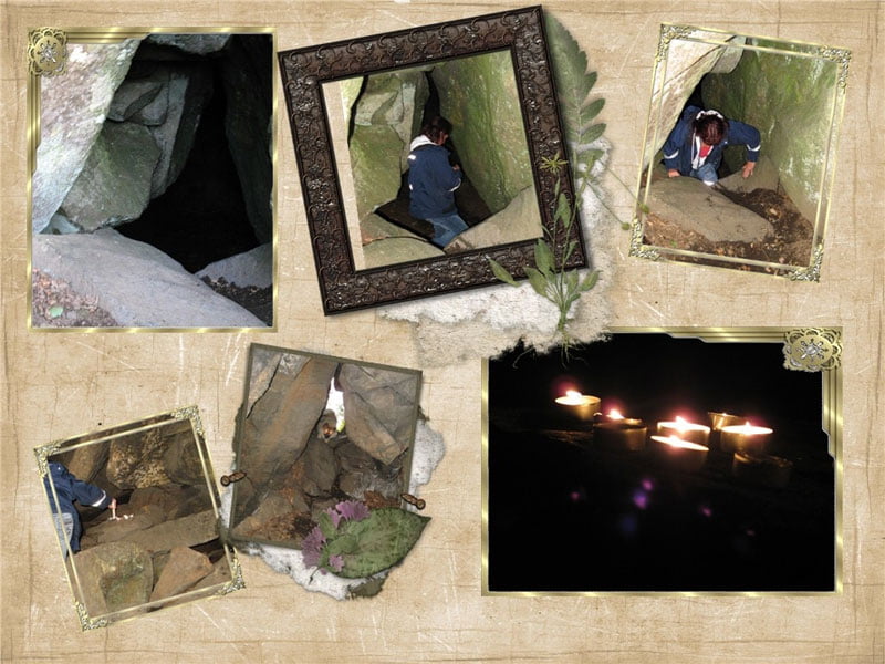 När vi var på väg ner hörde vi några barn uppe på berget till höger och tänkte att där måste det ju vara något spännande, så vi traskade ditåt och började klättra uppåt på de stora stenblocken. Rosa och Elvy väntade en stund innan de började klättra upp så Shakira och jag fick sitta och vänta en stund innan de kom. Jag har lite cellskräck så jag var lite osäker på om jag skulle våga gå in, men efter att kämpat sig upp så ville jag inte sitta på utsidan medan de andra gick in. Rosa klättrade in först med hjälp av skenet från sin mobil. Hon såg att det fans ljus så hon tände dem och då kunde jag inte hålla mig längre och klättrade ner. Det var en mysig känsla att stå i grottan med alla ljusen tända. Det var lite för högt hopp för Shakira att ta sig ned så hon väntade på utsidan. Men hon gjorde flera försök att ta sig ner, så hade vi varit där längre så hade hon allt hoppat in.