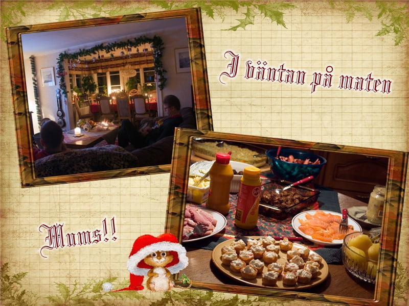 Trots att jag var i stort sett färdigt med allt blir jag alltid lite stressad innan alla kommer. Rätt fånigt egentligen, bättre att bara flyta med och koppla av. Nu var hela hemmet fullt av värmeljus och båda spisarna gick på högtryck så här var det riktigt varmt gott. Jag brukar gilla julmaten men i år var jag nog väldigt hungrig för jag tyckte aldrig maten har varit så god som i år. Wow! Vilket jobb Uddevallarna gjort med maten.