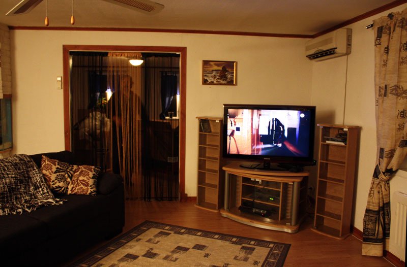 När vi satt och gottade oss i soffan, så small det till i rutan. Min första tanke var spöken! Alla tre hyresgäster har klagat på spöken under årens lopp, så det var det första jag tänkte på. Tobias som satt i fåtöljen sa att han såg något vitt, och trodde det kunde vara en fågel. Men när gubben gick ut och tittade så satt Fimpen på utsidan. Han måste ha varit vimsig idag, för hoppa genom rutor har han aldrig provat på förut. Och även om det spökar där uppe så måste det vara väldigt snälla spöken, för Shakira somnar så fort hon lägger sig på mattan.