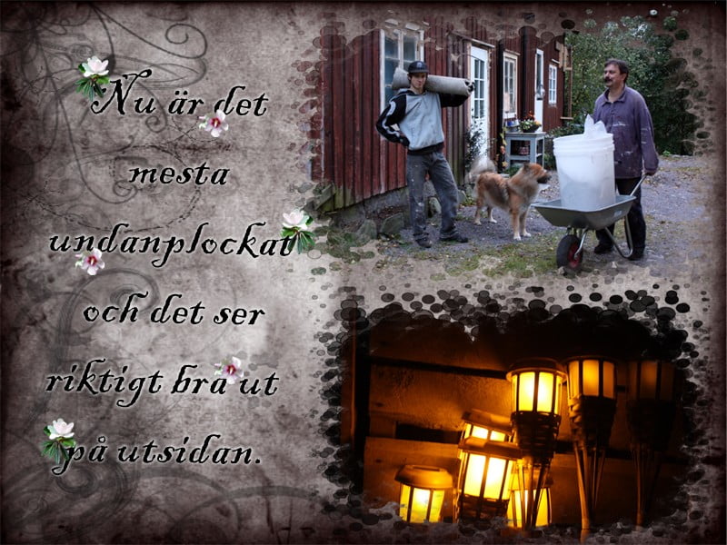 Härligt! Vi fick plockat undan riktigt bra och kom dessutom på nya idéer som man kan göra med det stora cement röret. Få se om jag klarar av att vänta till våren!? Börjar komma en bit på listan och det känns härligt. Jag har beslutat att ta en paus från kärring onsdagarna då det känns lite fel att det bara är jag som har massvis av jobb.