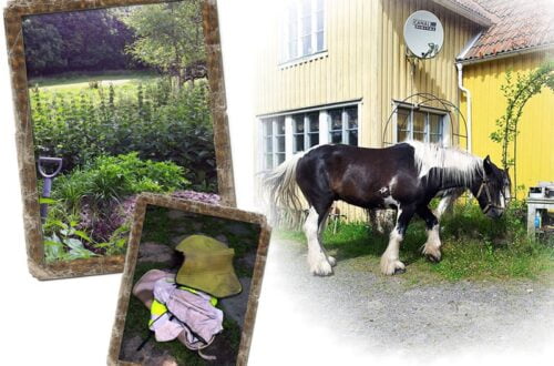 När jag och Micael röjde framför rotkällaren så kom den stora stubben fram. Jag hade tänk att sätta taklökar på den, men innan jag kommit så långt så har det hunnit att växa upp nytt sly och vi har börjat med annat. Men nu kunde vi inte låta bli att sätta en trädgårdstomte mitt på stubben. Måste leta efter något riktigt knasig att sätta på stubben.