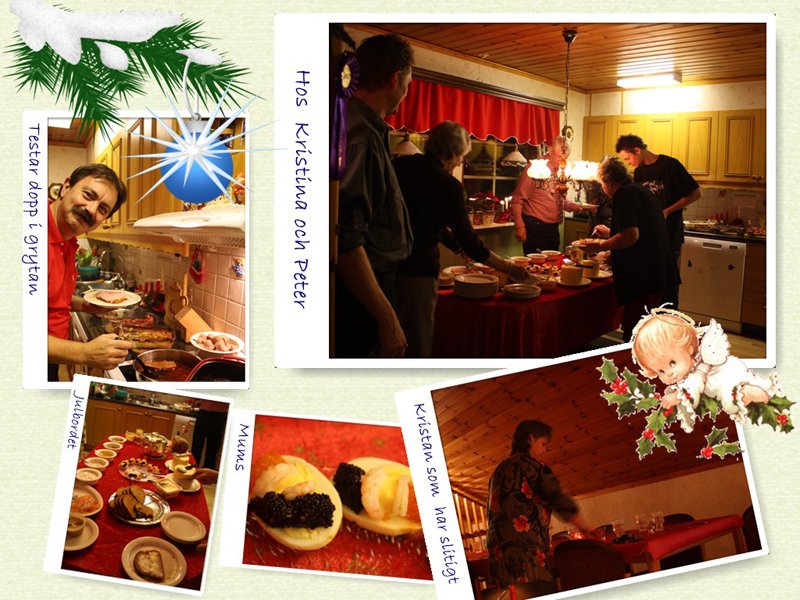 Christina och Peter hade gjort ett enormt jobb med att laga mat och fixa så alla skulle få plats. Claes-Olof testade dopp i grytan för första gången, på flera år. Jag provade grönkål för första gången, det ser himla mysko ut men var riktigt gott. Vi startade tidigt men tiden räckte lik förbaskat inte till, hade inte fixat backup som kunde fodra! Men jag hade kunnat koppla av, gulliga Monica stod i startgroparna och var på väg upp till hästarna när klockan närmade sig åtta och jag fortfarande inte var hemma.