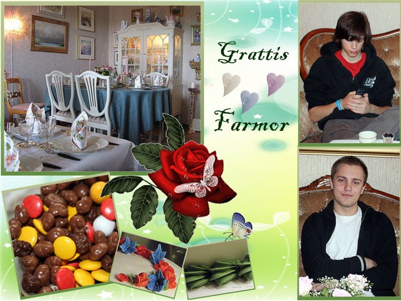 Vi åt en härlig smörgåstårta som var full av räkor och lax. Jag har aldrig sett en så kompakt och stor smörgåstårta som fullständigt smälte i munnen, en del smörgåstårtor har en tendens att växa i munnen och bara kladda sig fast i gommen. Sen blev det tårta. Dekorationen var jätte vacker och Peter fotograferade den i alla möjliga vinklar, så det tog ett tag innan vi kunde hugga in på den.