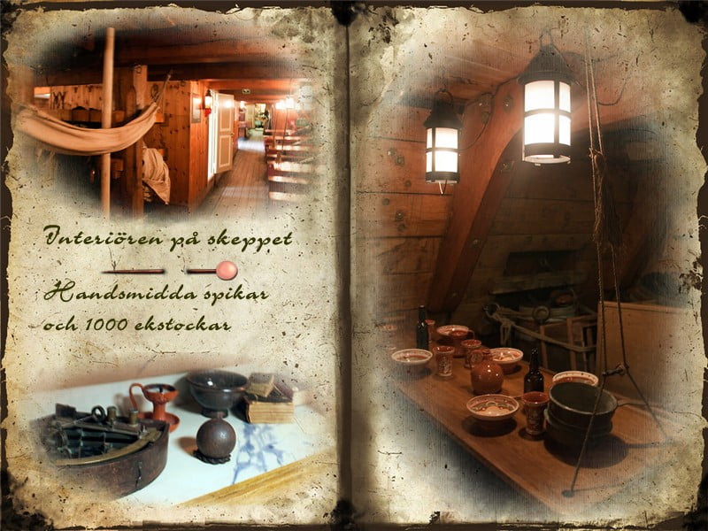 Vi hade jätteroligt och fick en så glad och stolt guide med berättarglädje att turen tog en timme och av och till blev det lite knöigt med alla grupper som skulle samsas. Jag kommer inte riktigt ihåg allt guiden sa men han varnade oss för att allt var ny-intjärat så vi skulle vara försiktiga och att repet som gick runt den stora styrratten var gjort av 14 Finska älgar.