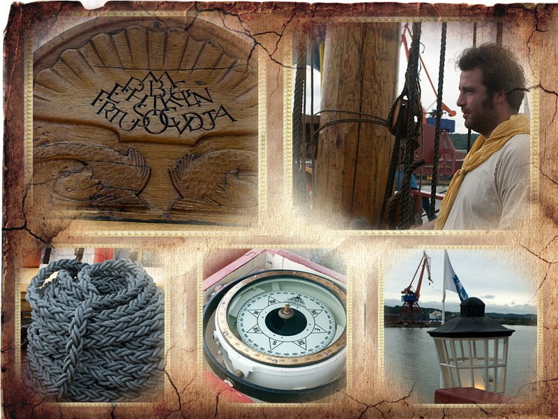 Medan man väntade på att få gå ombord kunde man fika och titta på när de tidstypiskt lagade seglen och tillverkade smide. Spana in den enorma trådrullen! Mängder med folk och de flesta hade riktigt stora kameror med sig och min Canon såg ut som en liten pocket kamera. Förstår mig inte på folk, har de köpt de här svindyra kamerorna som någon bling bling-pryl?! Jag kände äntligen, så har jag hamnat i en grupp på 25 personer och hälften hade stora systemkameror.