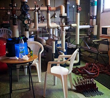 Granarna hade legat uppe i kokhuset och blivit ganska platta så Lill-polarn och Wumba Wu fick fluffa upp dem ordentligt så de skulle bli fina, sen var det glapp i en av granarna. Wumba Wu lyckades hitta rätt lampa att vrida på men så fort snickaren körde igång kapen lyste granarna svagare.